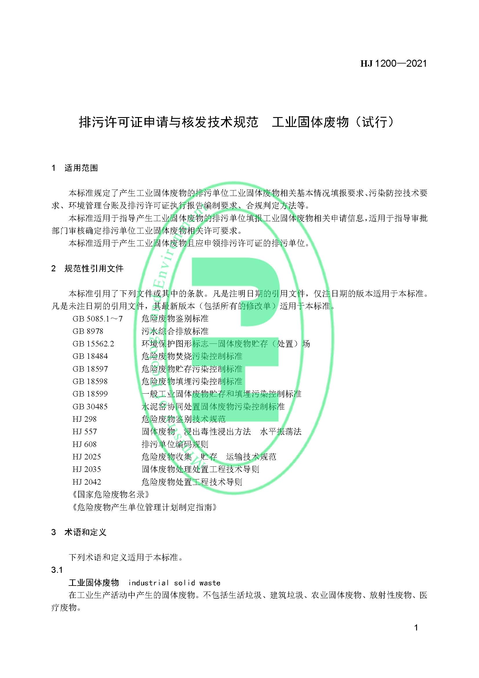 為貫徹《中華人民共和國環(huán)境保護(hù)法》《中華人民共和國固體廢物污染環(huán)境防治法》《排污許可管理?xiàng)l例》等法律法規(guī),完善排污許可技術(shù)支撐體系,指導(dǎo)和規(guī)范排污許可證中工業(yè)固體廢物相關(guān)內(nèi)容的申請與核發(fā)工作,制定本標(biāo)準(zhǔn)。本標(biāo)準(zhǔn)規(guī)定了產(chǎn)生工業(yè)固體廢物的排污單位工業(yè)固體廢物相關(guān)的基本情況填報(bào)要求、污染防控技術(shù)要求、環(huán)境管理臺賬及排污許可證執(zhí)行報(bào)告編制要求、合規(guī)判定方法等。本標(biāo)準(zhǔn)為首次發(fā)布。
