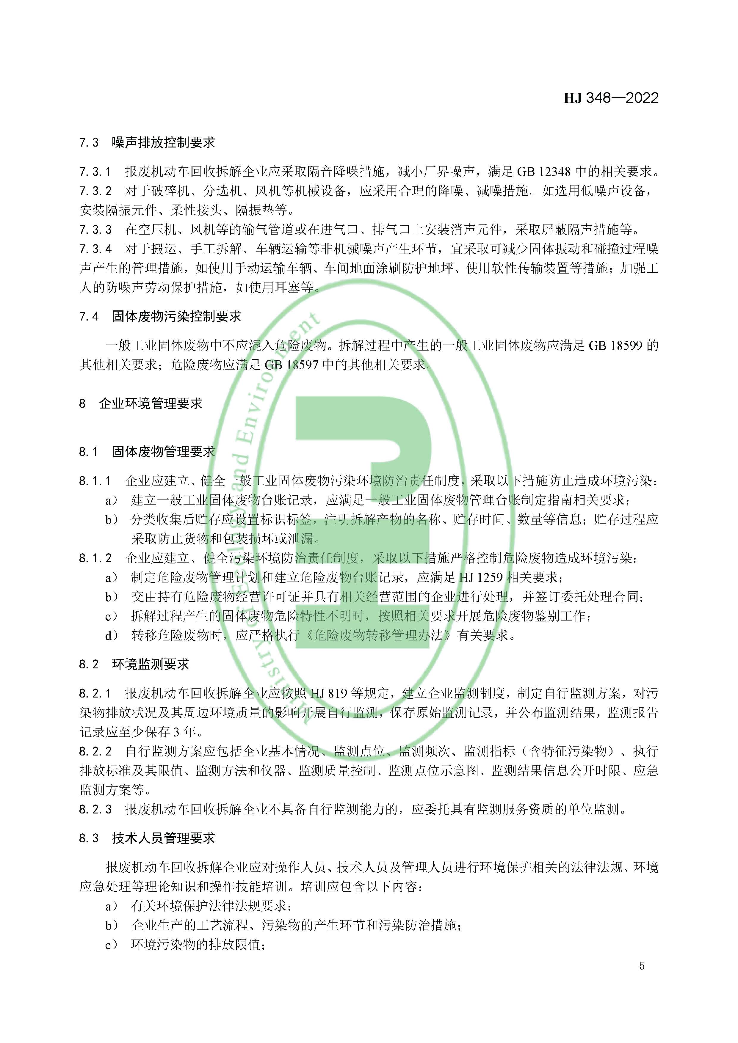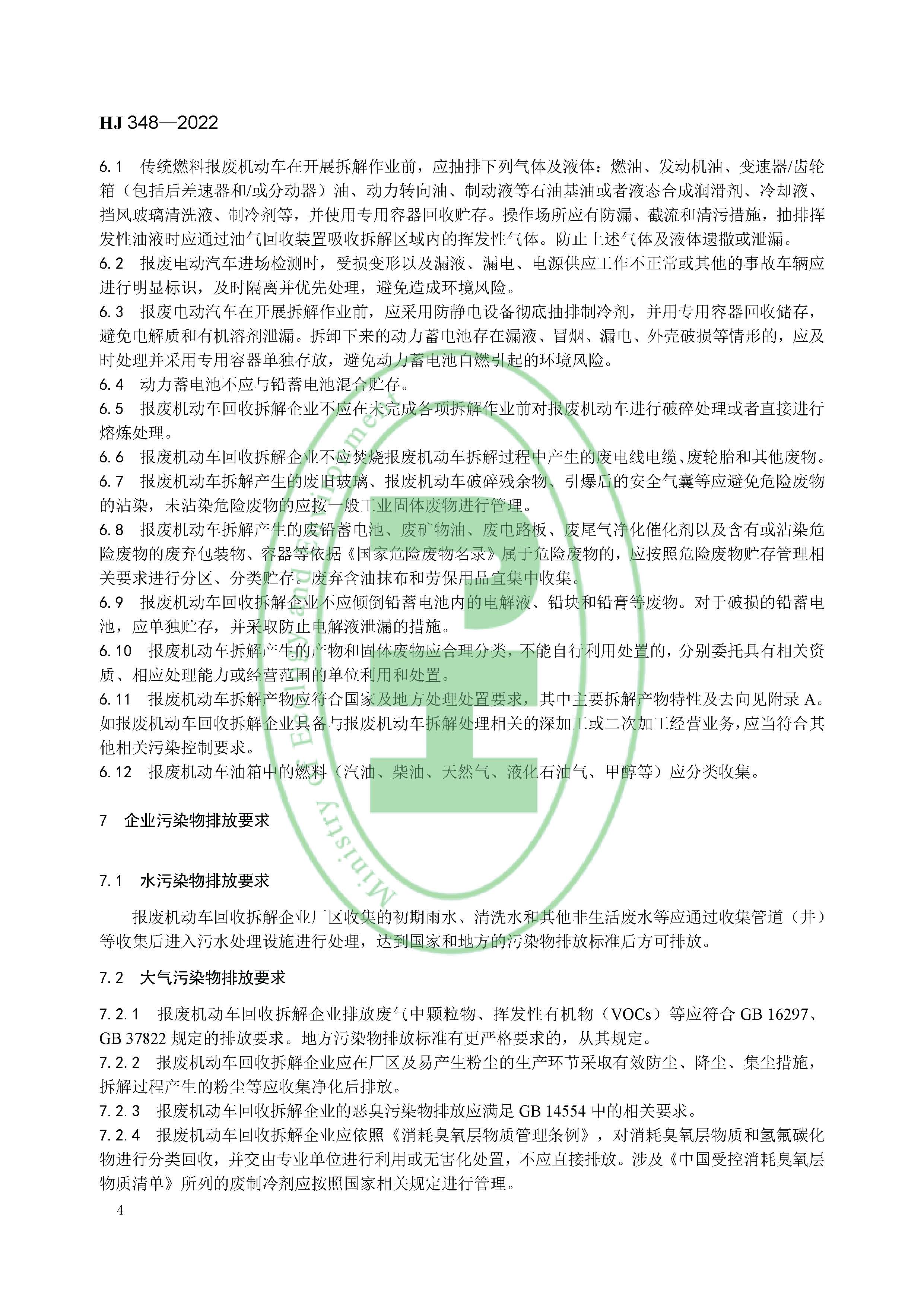 為貫徹《中華人民共和國環(huán)境保護(hù)法》《中華人民共和國固體廢物污染環(huán)境防治法》《報(bào)廢機(jī)動(dòng)車回收管理辦法》等法律法規(guī),防治報(bào)廢機(jī)動(dòng)車拆解過程的環(huán)境污染,規(guī)范報(bào)廢機(jī)動(dòng)車拆解環(huán)境管理工作,制定本標(biāo)準(zhǔn)。本標(biāo)準(zhǔn)規(guī)定了報(bào)廢機(jī)動(dòng)車拆解總體要求,企業(yè)基礎(chǔ)設(shè)施和拆解過程污染控制要求,污染物排放要求,環(huán)境管理要求以及環(huán)境監(jiān)測與突發(fā)環(huán)境事件應(yīng)急預(yù)案要求。本標(biāo)準(zhǔn)首次發(fā)布于 2007 年,本次是對(duì)《報(bào)廢機(jī)動(dòng)車拆解環(huán)境保護(hù)技術(shù)規(guī)范》(HJ 348—2007)的第一次修訂。