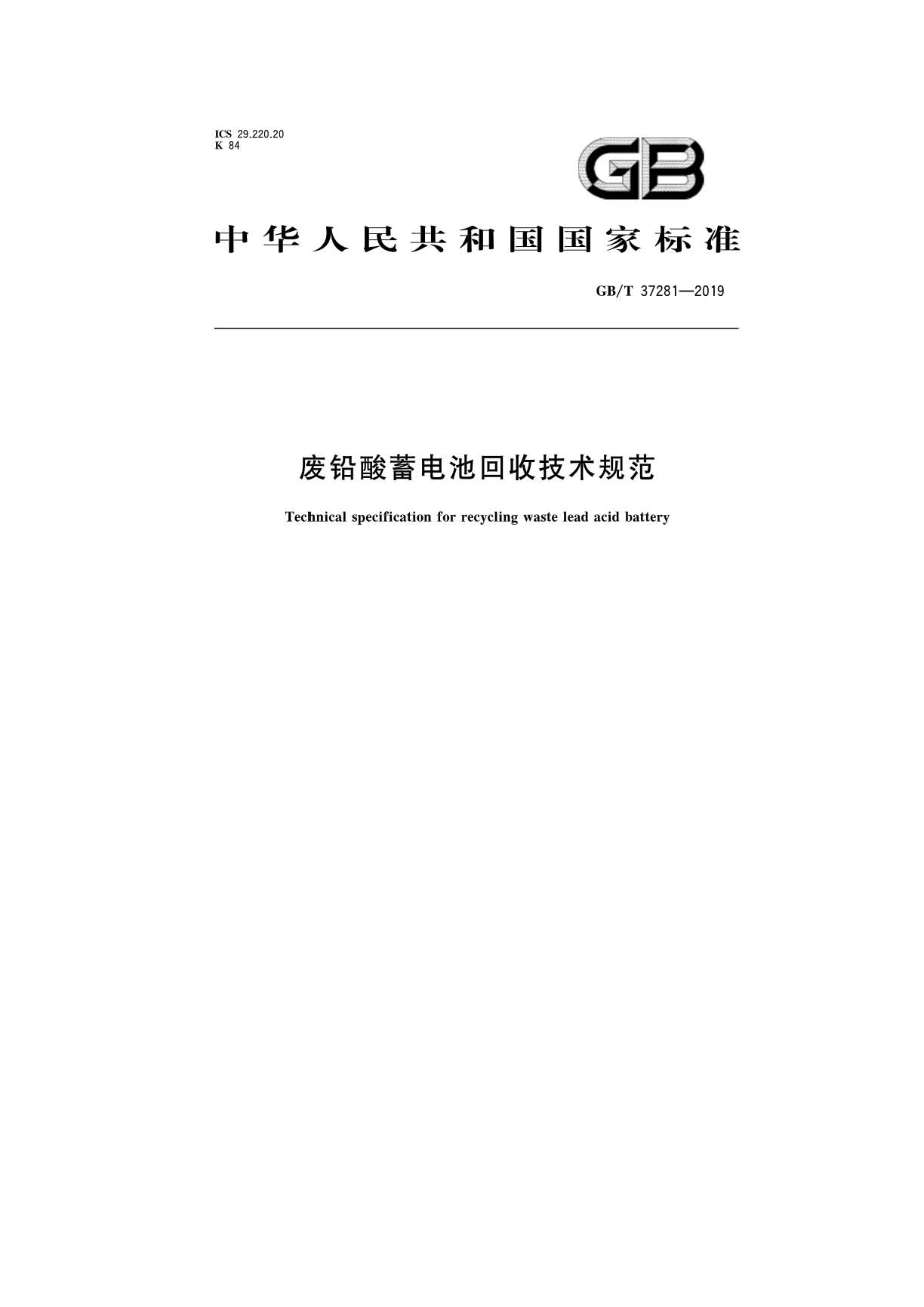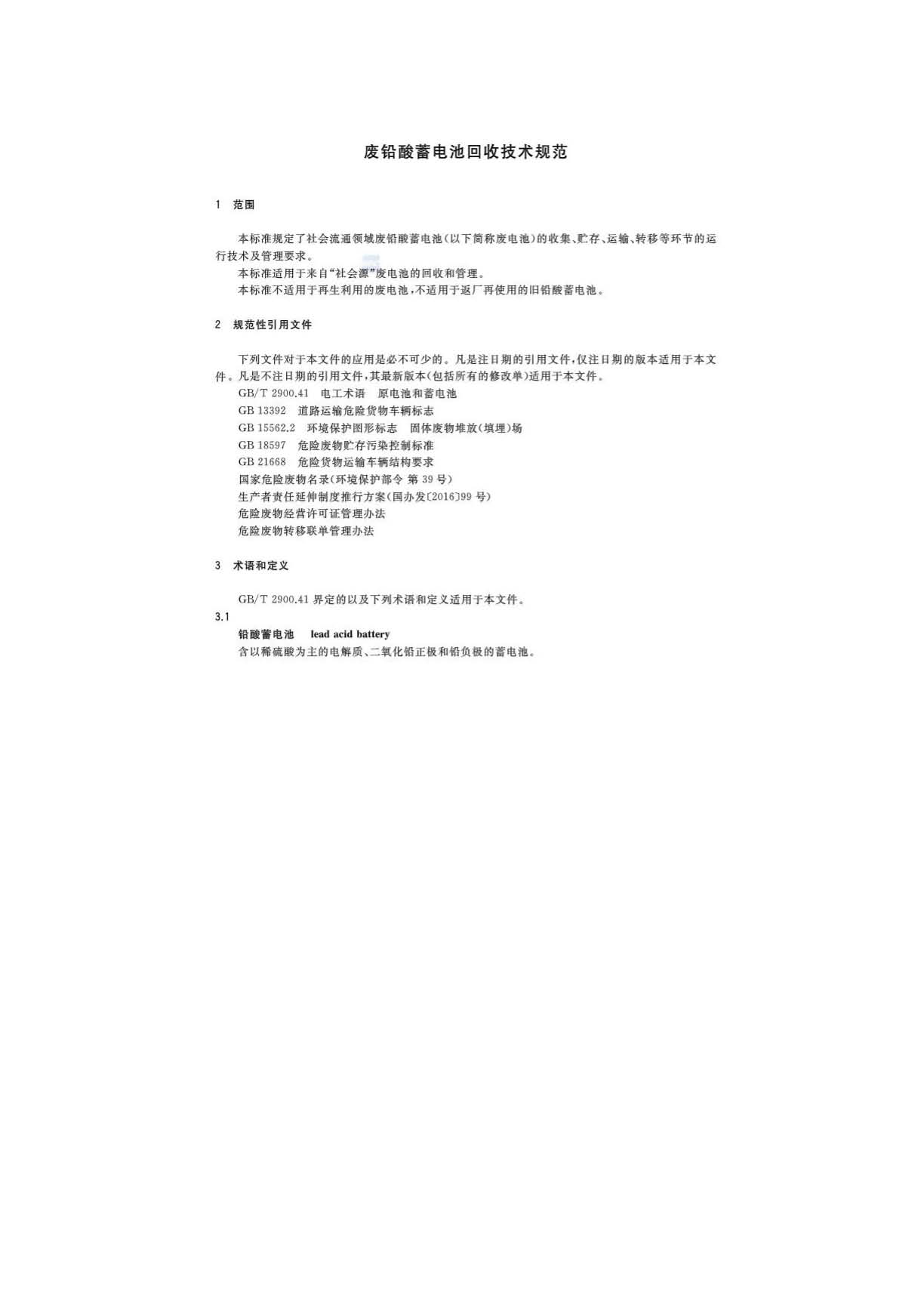 《廢鉛酸蓄電池回收技術(shù)規(guī)范》