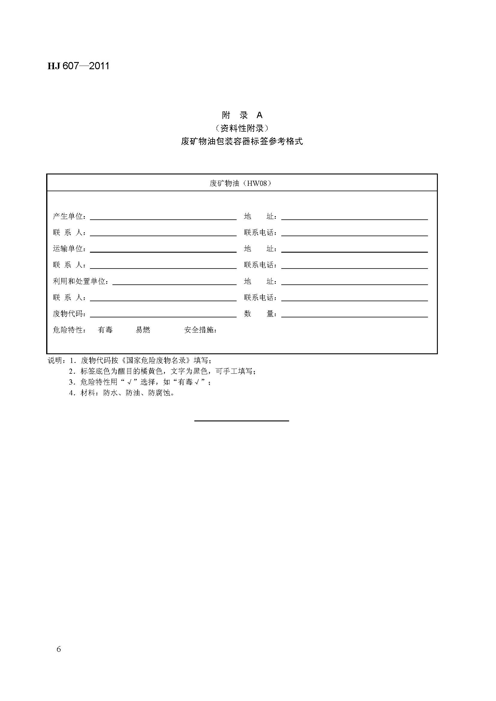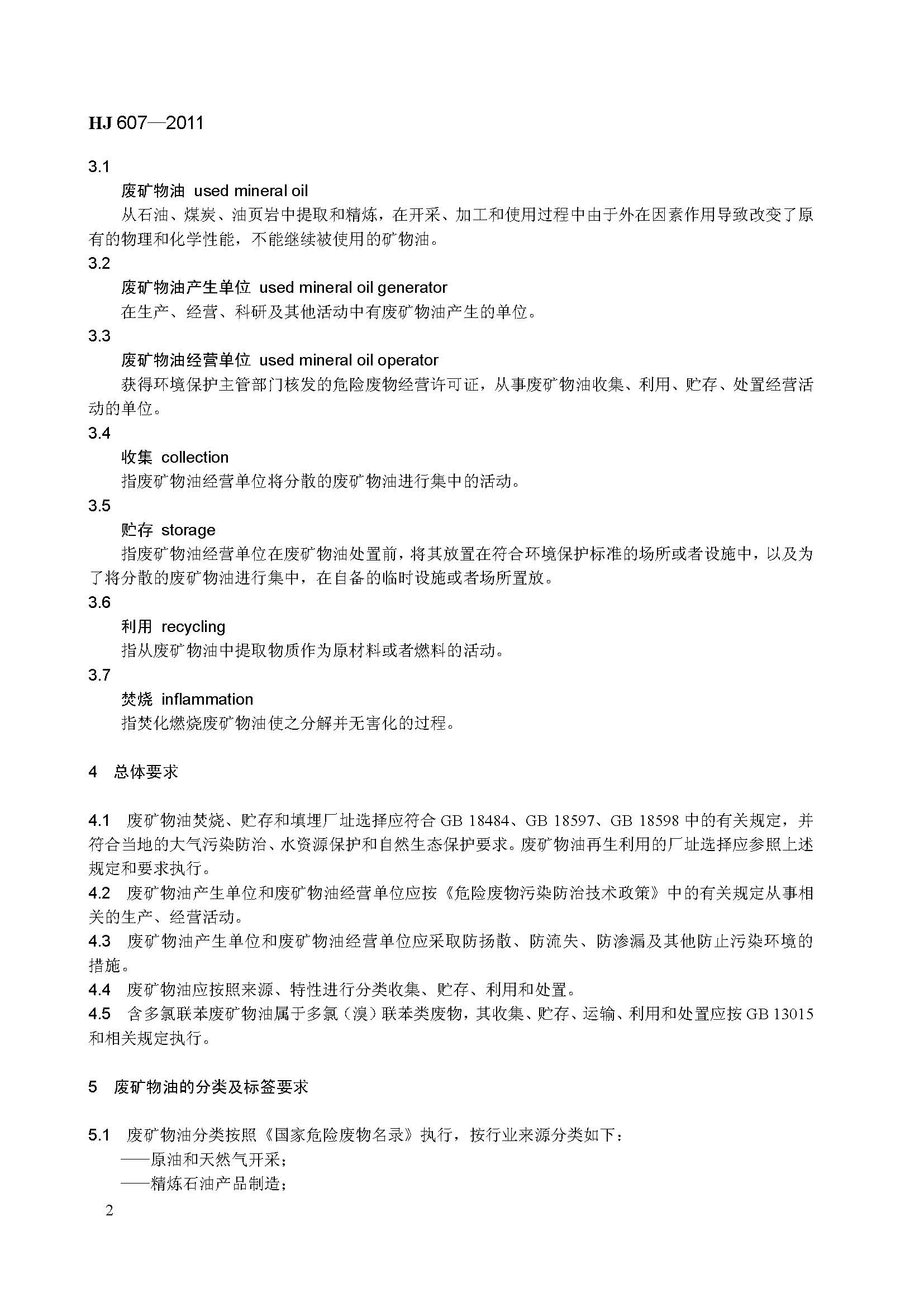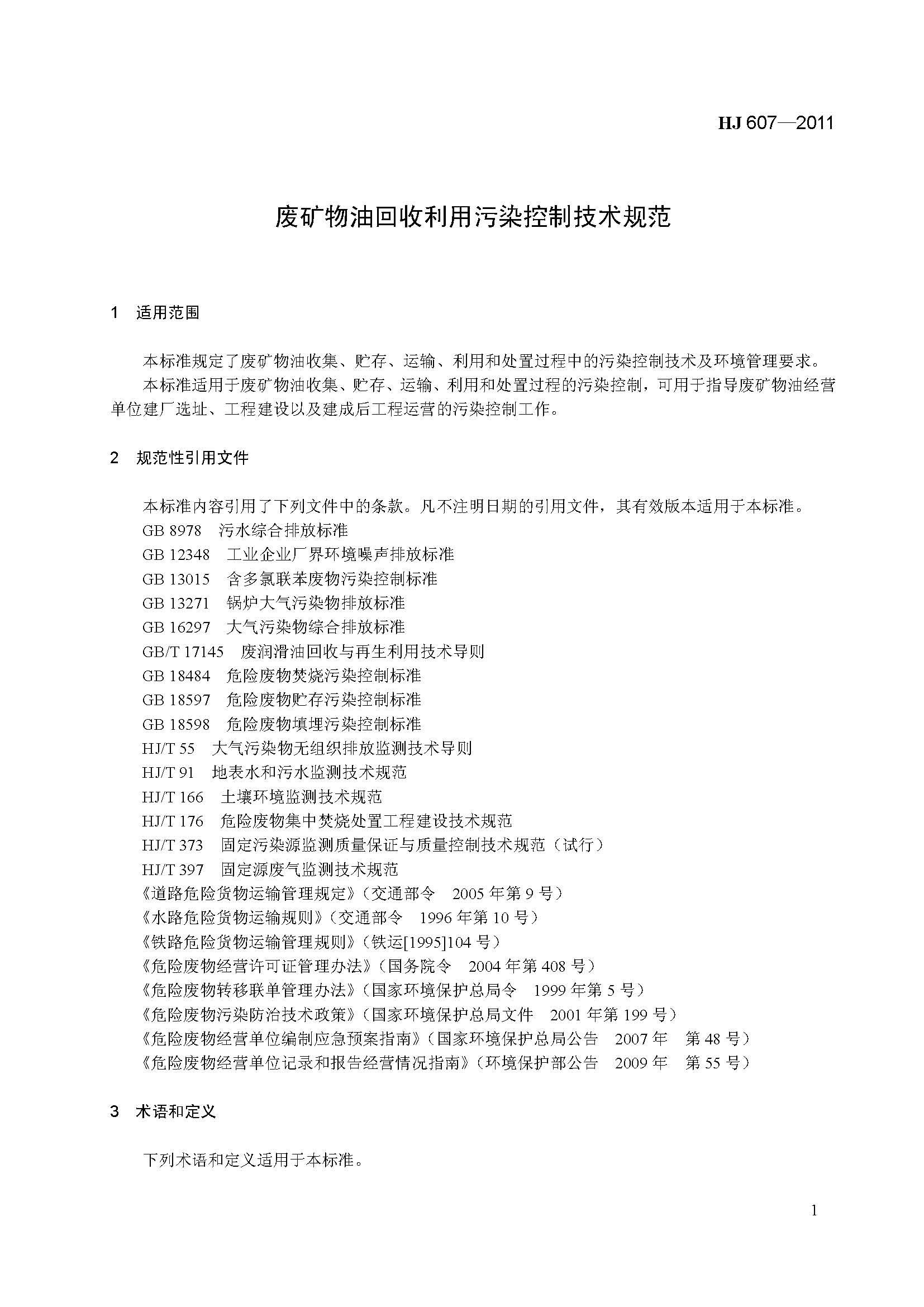 為貫徹《中華人民共和國環(huán)境保護(hù)法》、《中華人民共和國固體廢物污染環(huán)境防治法》,規(guī)范廢礦物油回收利用、處置行為,防治廢礦物油對環(huán)境的污染,保護(hù)環(huán)境,保障人體健康,制定本標(biāo)準(zhǔn)。本標(biāo)準(zhǔn)規(guī)定了廢礦物油收集、運(yùn)輸、貯存、利用和處置過程中的污染控制技術(shù)及環(huán)境管理要求。本標(biāo)準(zhǔn)適用于廢礦物油收集、貯存、運(yùn)輸、利用和處置過程的污染控制,可用于指導(dǎo)廢礦物油經(jīng)營單位建廠選址、工程建設(shè)以及建成后工程運(yùn)營的污染控制工作。本標(biāo)準(zhǔn)為首次發(fā)布。