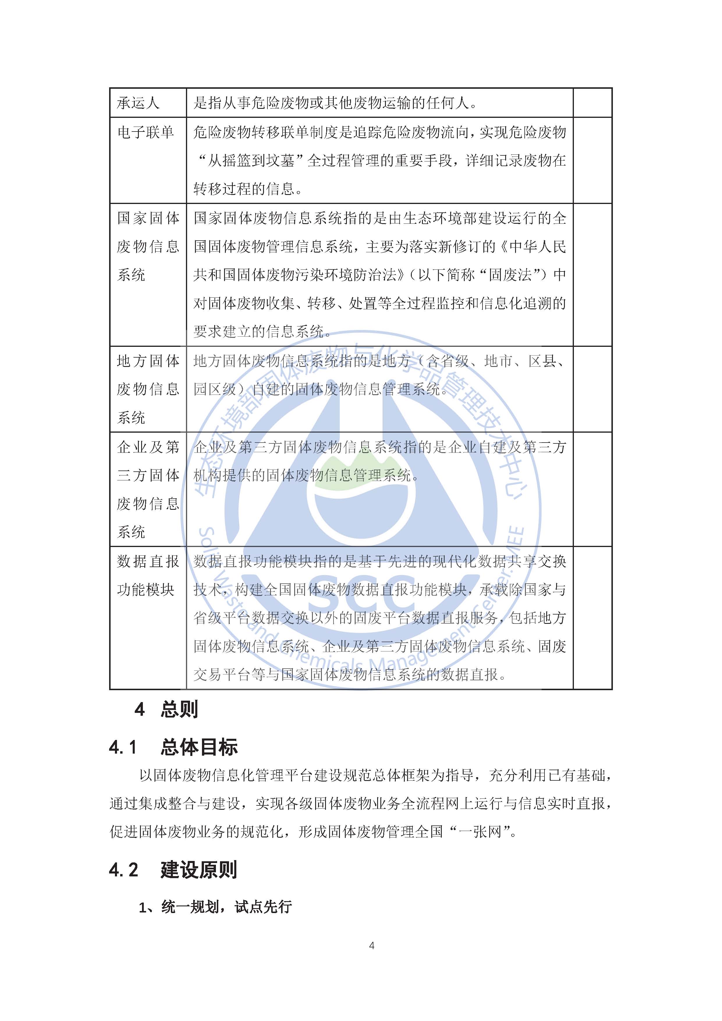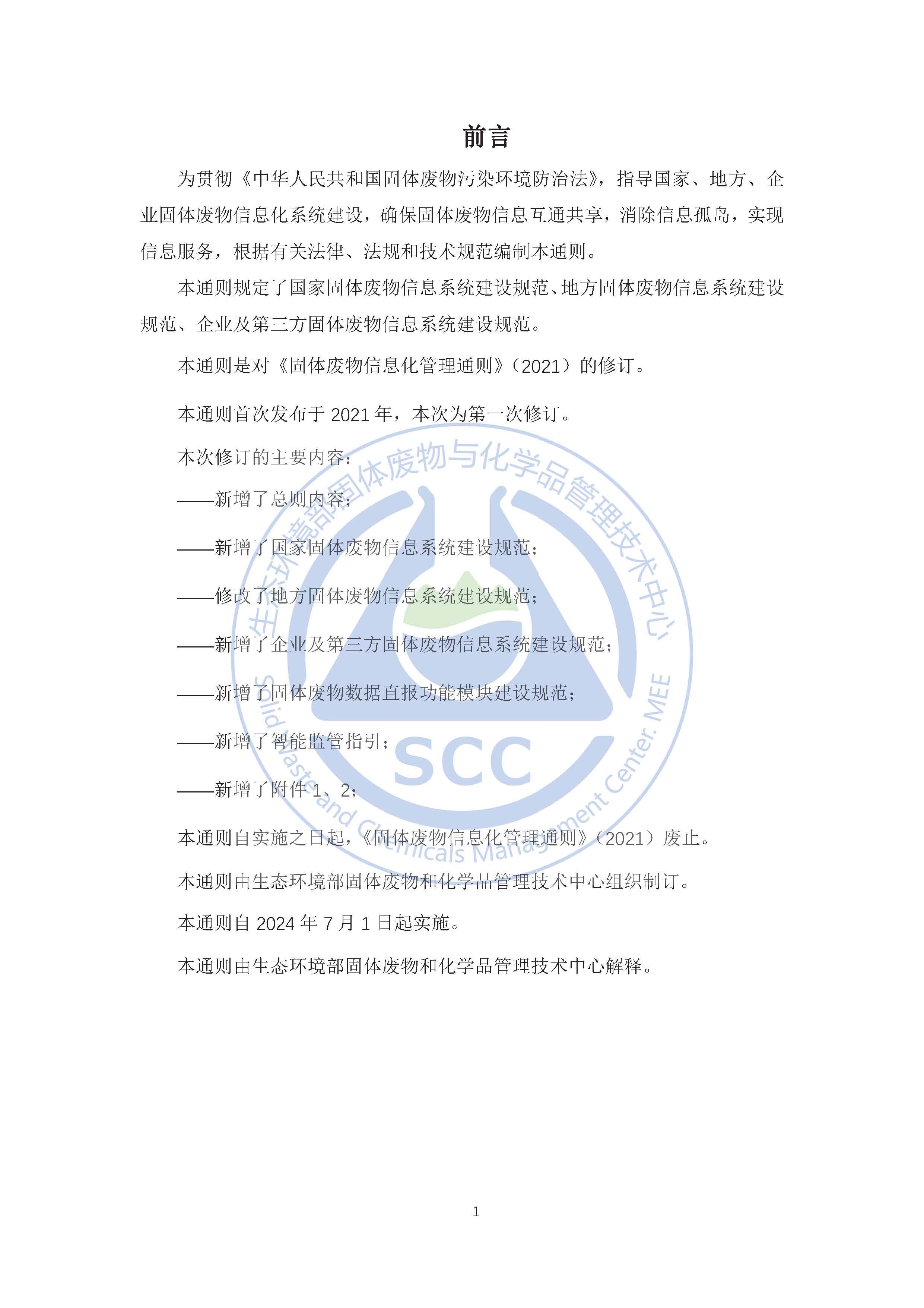 為進(jìn)一步貫徹落實(shí)《固體廢物污染環(huán)境防治法》,推進(jìn)固體廢物收集、貯存、運(yùn)輸、利用、處置等全過程監(jiān)控和信息化追溯,促進(jìn)固體廢物環(huán)境管理信息互聯(lián)互通和共建共享,結(jié)合生態(tài)環(huán)境部關(guān)于固體廢物信息化管理工作要求,我中心組織完成《固體廢物信息化管理通則(2024年版)》的編制,供各地開展固體廢物環(huán)境信息化管理系統(tǒng)建設(shè)和應(yīng)用工作時(shí)參照?qǐng)?zhí)行。