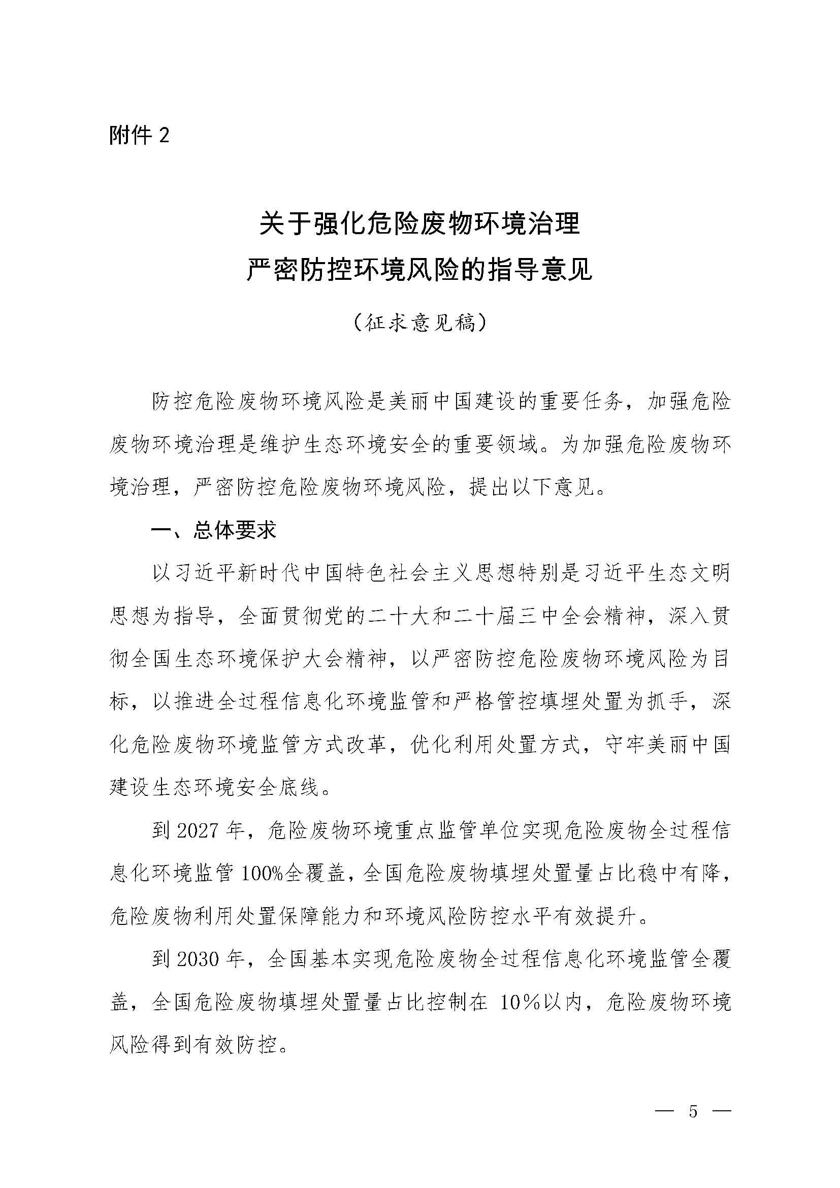 為貫徹落實《中華人民共和國固體廢物污染環(huán)境防治法》,深化危險廢物環(huán)境監(jiān)管方式改革,優(yōu)化利用處置方式,嚴密防控危險廢物環(huán)境風險,我部組織編制了《關于強化危險廢物環(huán)境治理 嚴密防控環(huán)境風險的指導意見(征求意見稿)》,現公開征求意見(征求意見稿及編制說明可登錄生態(tài)環(huán)境部網站http://www.mee.gov.cn/“意見征集”欄目檢索查閱)。