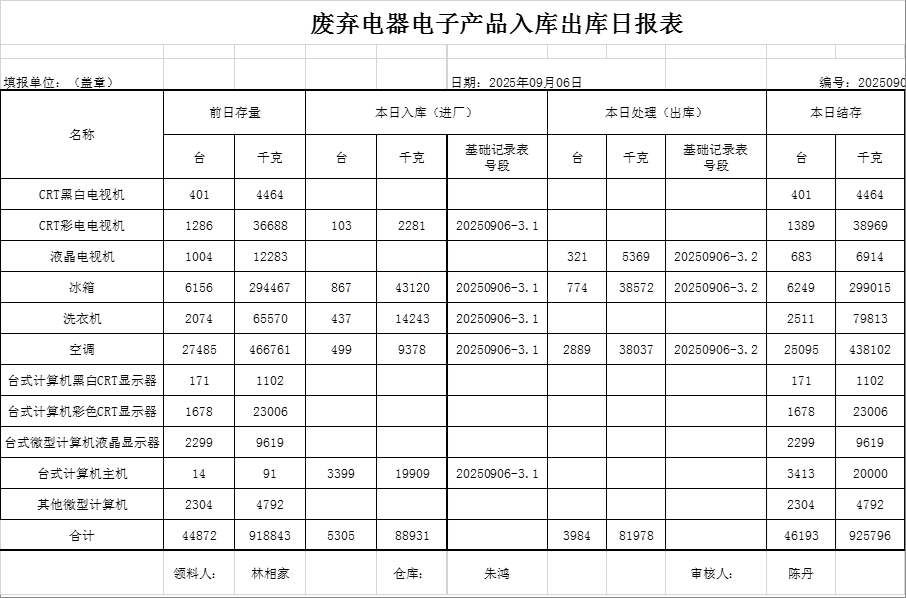 2025.09.05回收拆解統(tǒng)計(jì)表