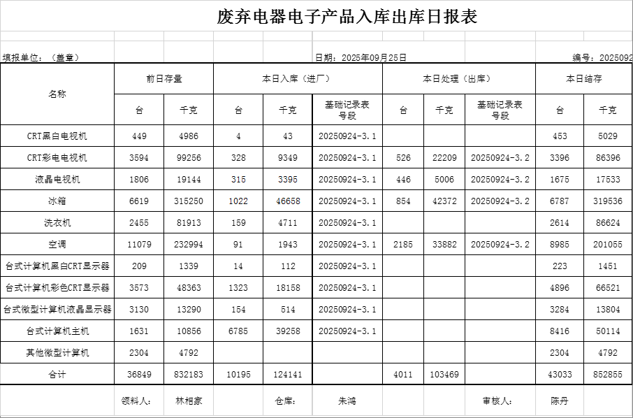 2025.09.24回收拆解統(tǒng)計(jì)表