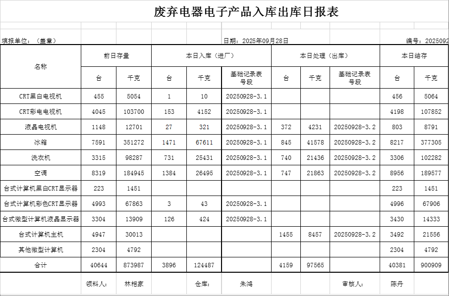 2025.09.28回收拆解統(tǒng)計(jì)表