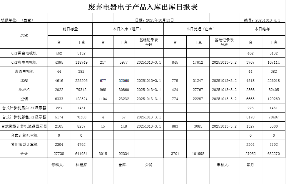 2025.10.13回收拆解統(tǒng)計(jì)表