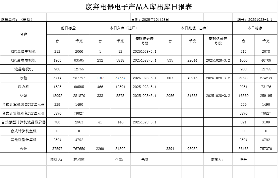 2025.10.28回收拆解統(tǒng)計(jì)表