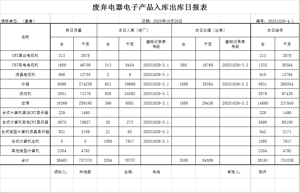 2025.10.29回收拆解統(tǒng)計(jì)表