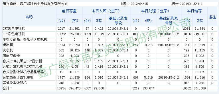 2019.04.16回收拆解統(tǒng)計(jì)表