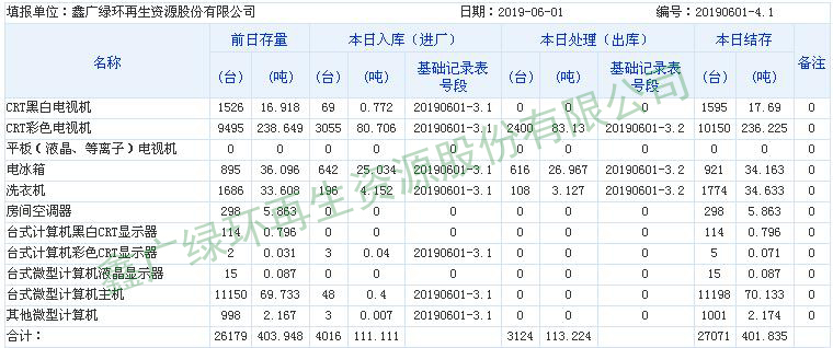 2019.06.01回收拆解統(tǒng)計表