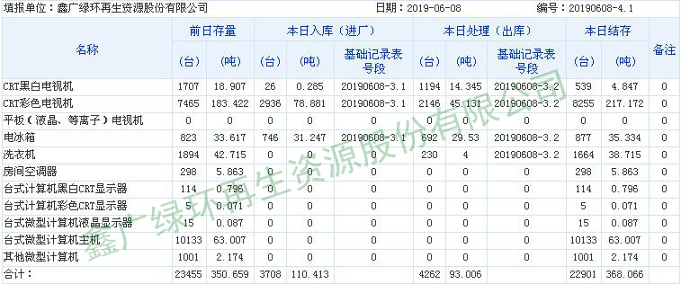 2019.06.08回收拆解統(tǒng)計(jì)表