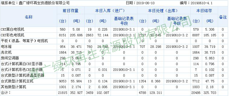 2019.06.11回收拆解統(tǒng)計(jì)表