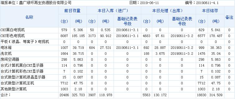 2019.06.11回收拆解統(tǒng)計表
