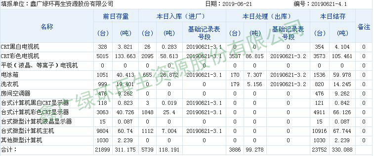 2019.06.21回收拆解統(tǒng)計表