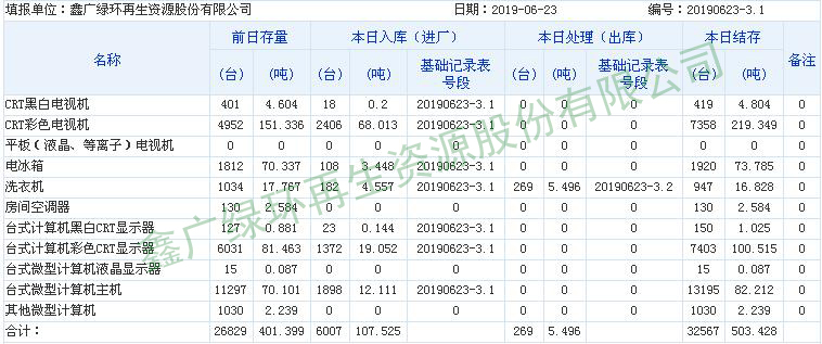 2019.06.23回收拆解統(tǒng)計(jì)表