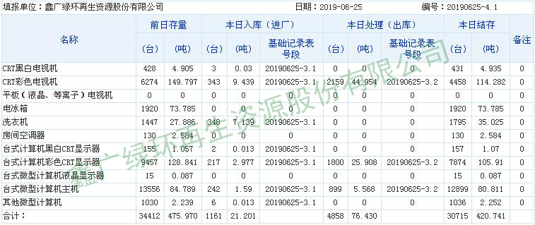 2019.06.24回收拆解統(tǒng)計(jì)表