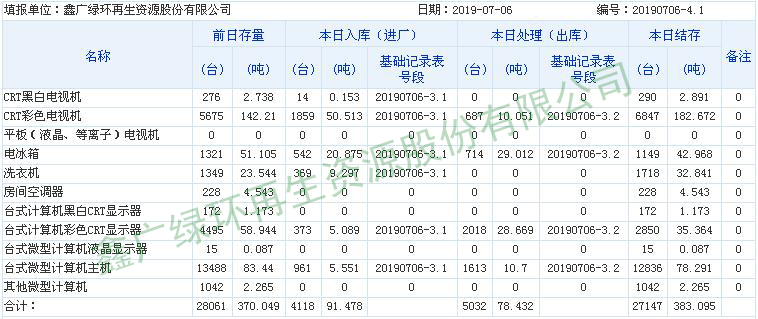 2019.07.06回收拆解統(tǒng)計表