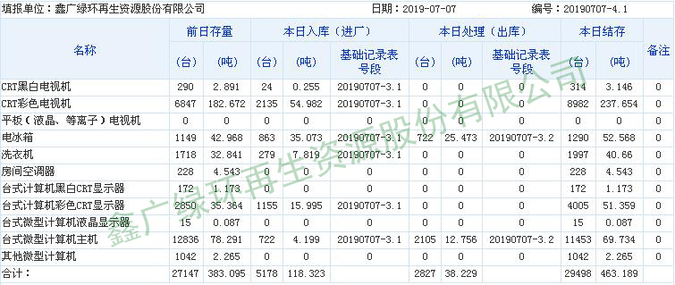 2019.07.07回收拆解統(tǒng)計(jì)表