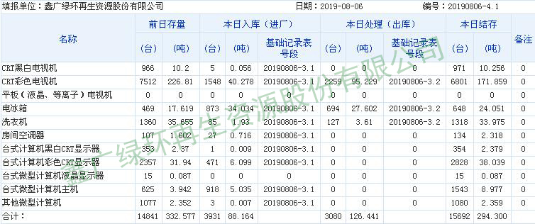 2019.08.06回收拆解統(tǒng)計(jì)表