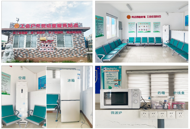 在煙臺(tái)黃渤海新區(qū)總工會(huì)幫助下,鑫廣綠環(huán)將A區(qū)二號(hào)門崗客戶休息區(qū)打造成戶外勞動(dòng)者服務(wù)站,向戶外勞動(dòng)者免費(fèi)提供熱水、解暑飲品,急救愛心藥品等,服務(wù)站內(nèi)可以免費(fèi)享受手機(jī)充電、微波爐餐食加熱等便民服務(wù),為公司客戶、環(huán)衛(wèi)工人、外賣小哥等戶外勞動(dòng)者帶來回家的感覺。