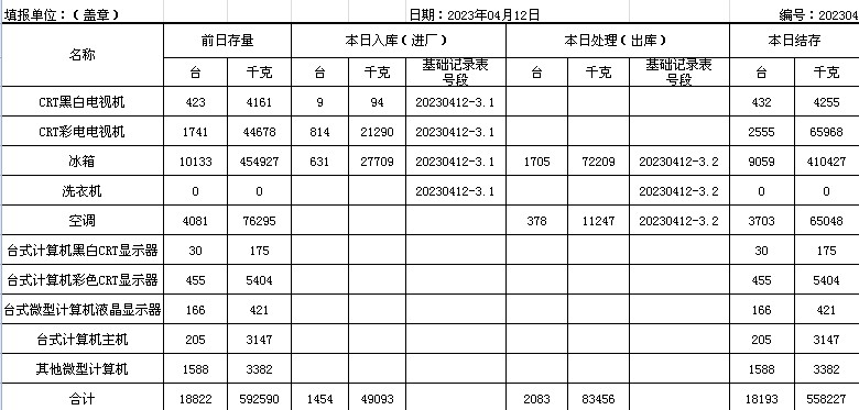 2023.04.12回收拆解統(tǒng)計(jì)表