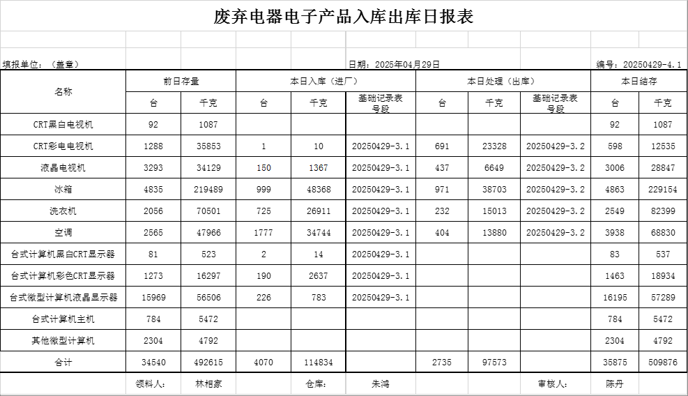 2025.04.29回收拆解統(tǒng)計(jì)表