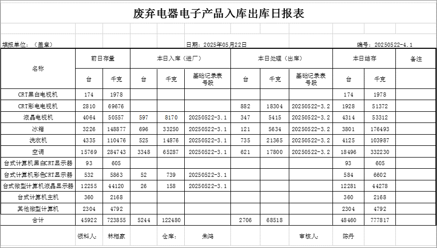2025.05.22回收拆解統(tǒng)計(jì)表