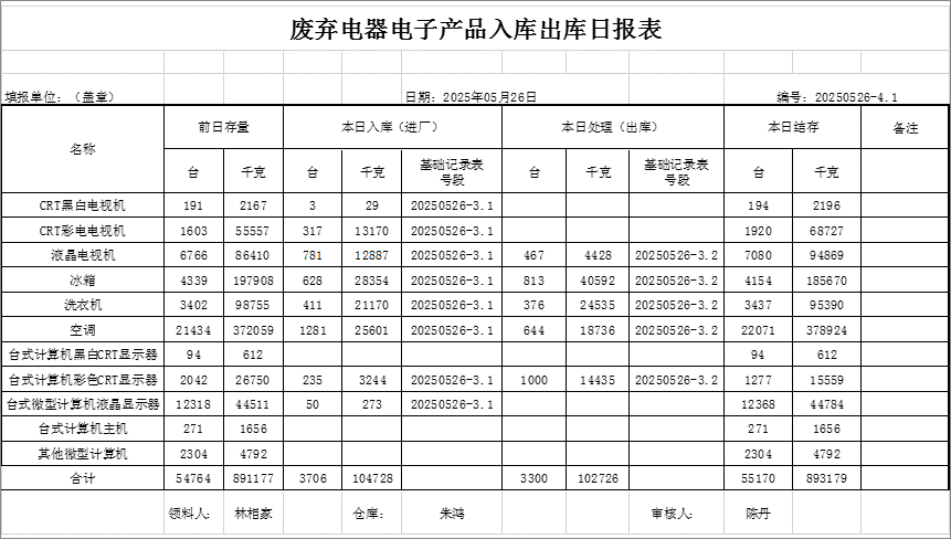 2025.05.26回收拆解統(tǒng)計(jì)表