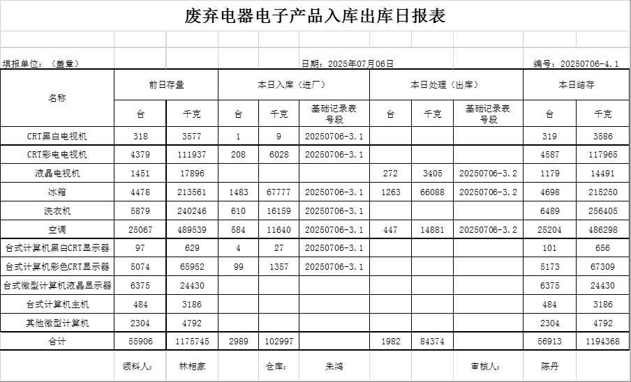2025.07.06回收拆解統(tǒng)計(jì)表
